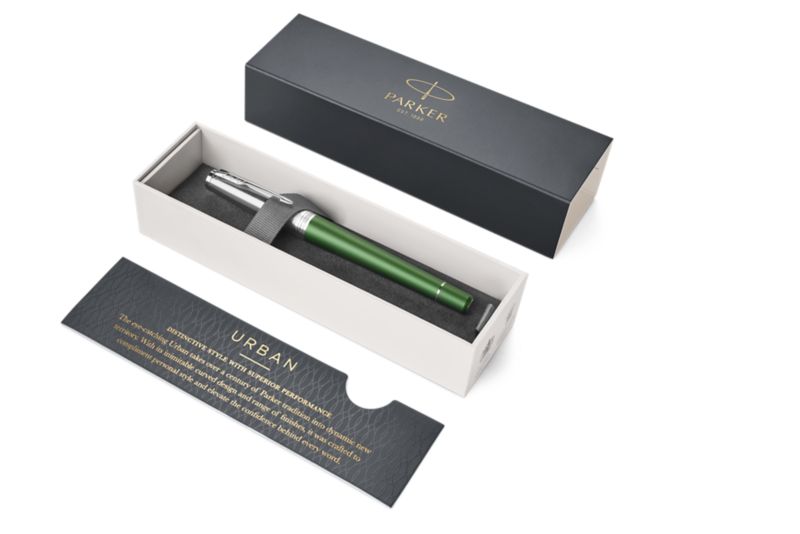 Ручка роллер Parker Urban Premium Green от официального дилера Parker в Подольске. Вы можете дополнительно заказать гравировку, которая подчеркнет Вашу оригинальность и придаст памятность статусному подарку. Все ручки Паркер поставляются в фирменном футляре.