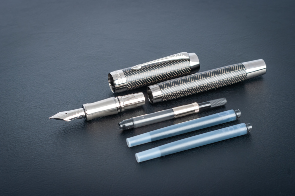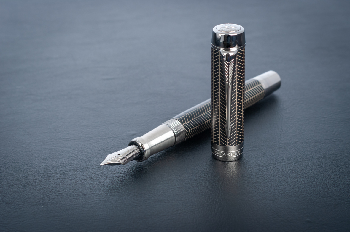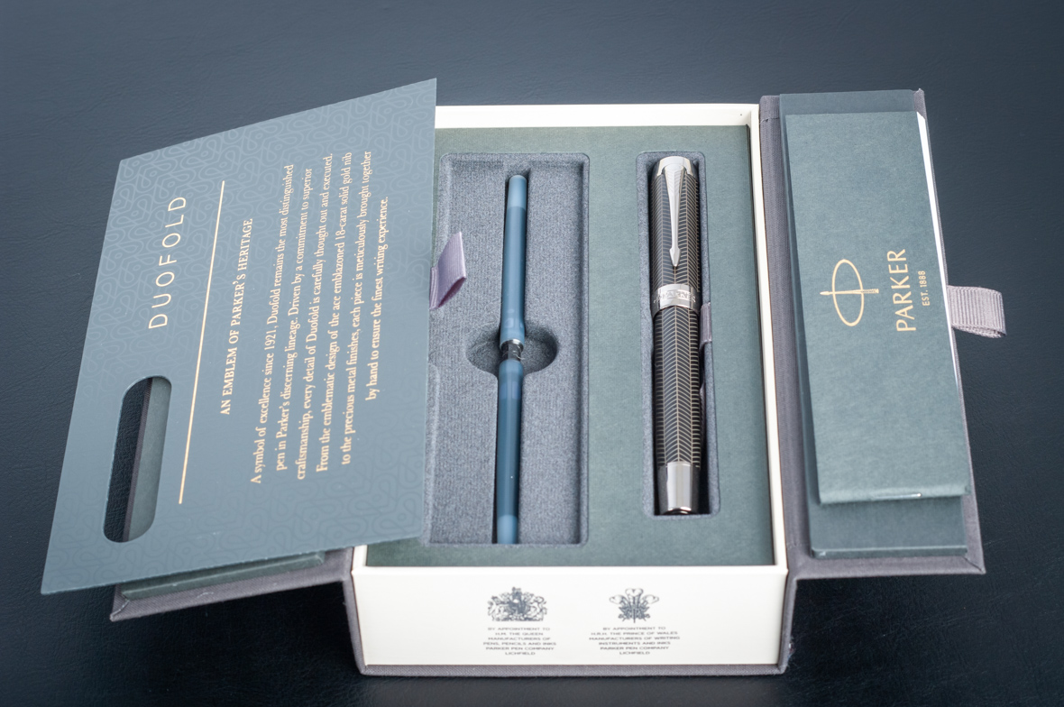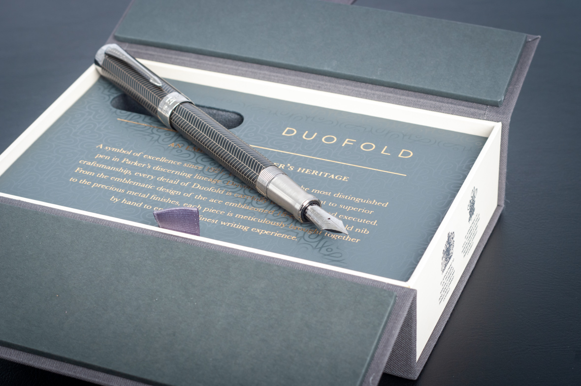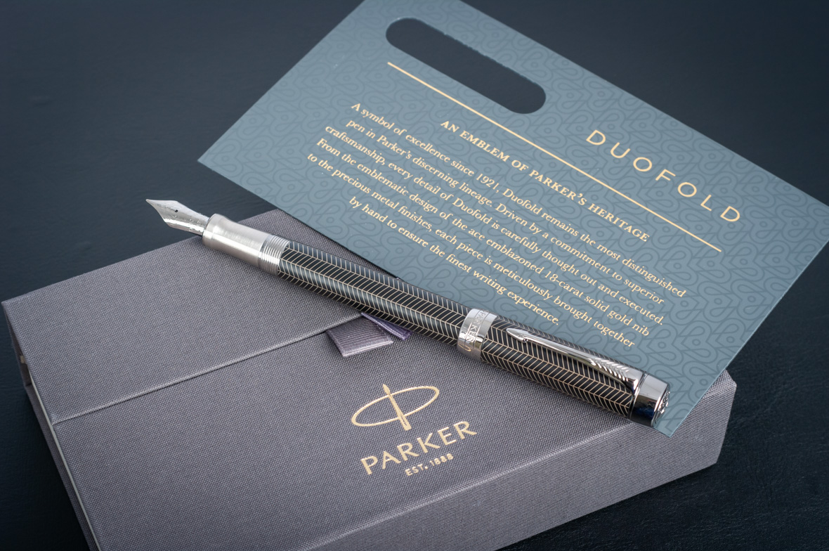 Перьевая ручка Parker Duofold Prestige Centennial Black Chevron CT от официального дилера Parker в Подольске. Вы можете дополнительно заказать гравировку, которая подчеркнет Вашу оригинальность и придаст памятность статусному подарку. Все ручки Паркер поставляются в фирменном футляре.